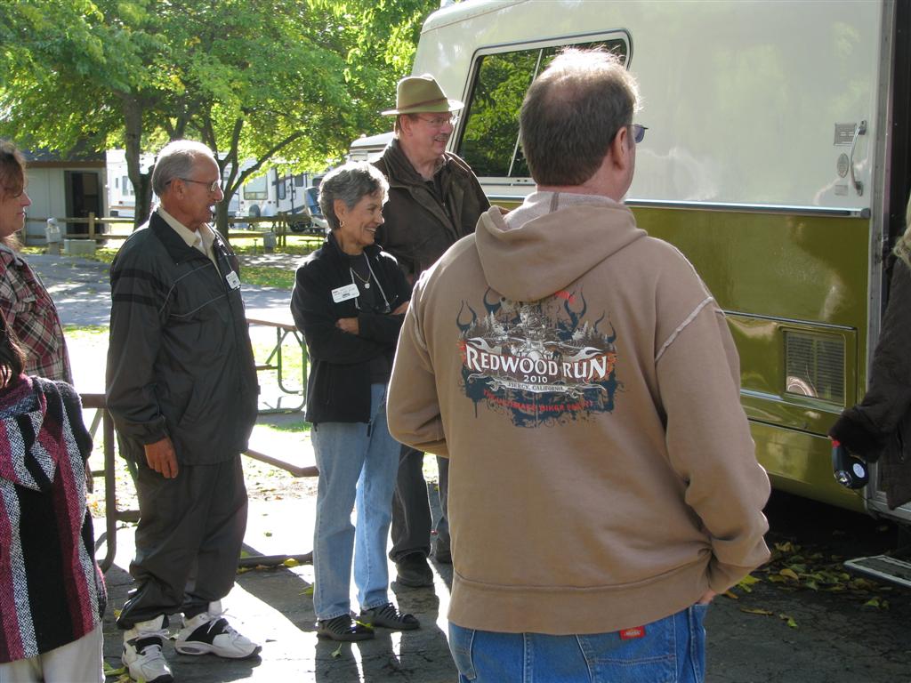 Here Paco, Dean, Laura, and Larry are also watching closely. | Randy Bradshaw, on the left,filled in any technical information needed to explain the pumps operation. Jim Woestman and Tracie Hankerson also were interested. | A little more explaination and we were off to ... | ... tour Jim Woestman's coach #617. It is a full black out along the side and is very nicely done inside. | ||