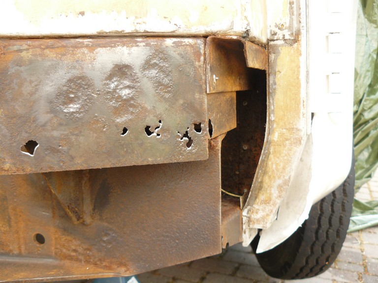 (1 Comments) | The front is remowed to do the wiring and repair the last known rust damage on chassis,in lower left corner. | On the outside, the rust damage is like expeted. | |||