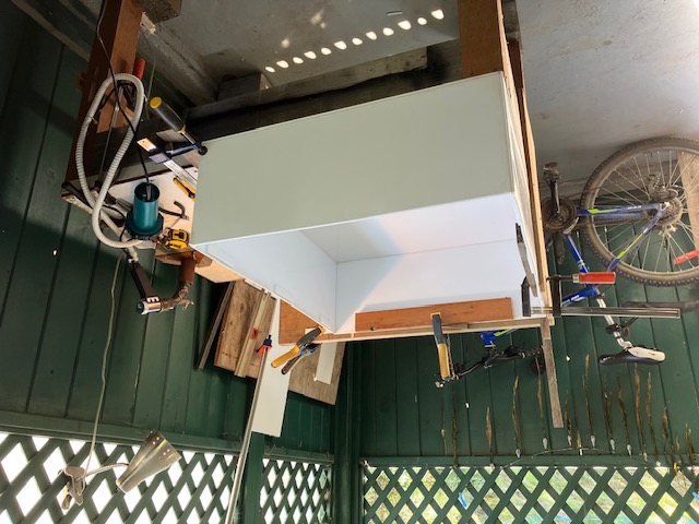 On the early coaches you got a 38 US gal forward tank beneath and forward of the front spring. This is the fiberglass housing that encased the tank and insulation around it. If you can get one of these somewhere it'll make your job easier... sort of. I ended up making my own tank and elected to make it 1/2" or so taller which necessitated getting rid of the upper lid which then didn't fit. | Here's one of the early forwards tanks I got from buddy, Jay, in Wa. along with the housing a few yrs back. Fittings on this one leaked badly and regardless of my best efforts to weld them up to stop the leaks I was unsuccessful and had to toss it. I would learn later that 50-ish year old HDPE simply isn't worth the time or trouble to repair and expect any useful service out of it. I'm posting some dimensions here as well for future reference. | I decided to learn to do plastic hot-air welding to build my own tank. If anyone decides to follow along and make their own tank - THEY DO SO ENTIRELY AT THEIR OWN RISK. This post in no way is intended as an instruction publication on how it should be done. It's merely my account of how I did it and the issues I encountered. | Got me a hot-air welder, a 4x8' sheet of 1/4" HDPE, a bunch of 3/16" x 3ft. wht. HDPE welding rods,bucked out all the pieces on my table saw and with the scraps I welded up this contraption to see if my very first corner-weld would hold water. Well, it did... for 3 days till I dumped it out, then satisfied my plastic welding apprenticeship was successful. What a pile of shit that notion turned out to be. | ||