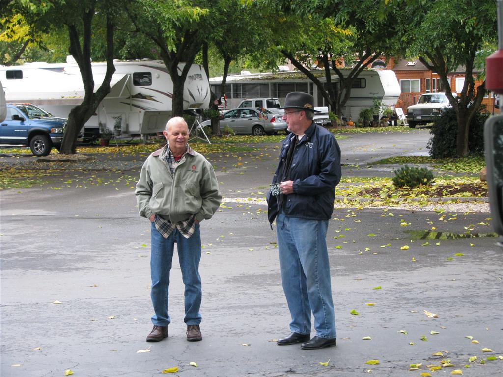 Visiting and talking is a lot of what we do. Here Joe Camrye and his mother, Nuntawan talk with Jim Woestman and Ed Marshall. Joe is petting Ed's two dogs.