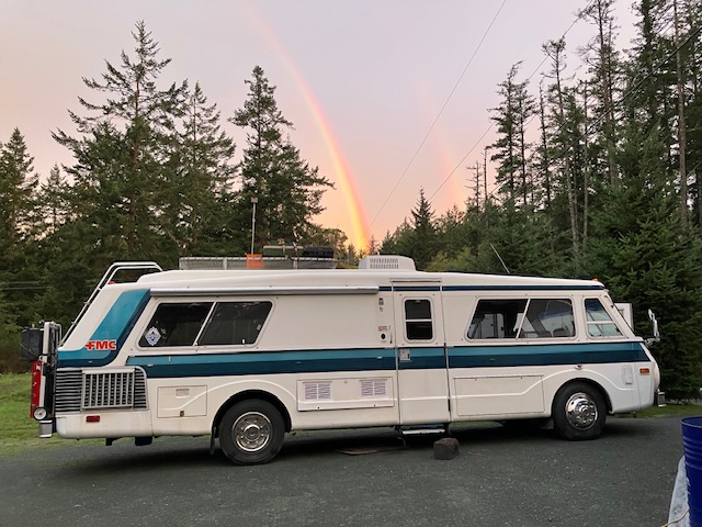 Finally did an MPG calculation since the Cummins install. 90% of the miles were on the hwy averaging 65 miles per hour, with a good mix of steep hills as well as winding and flat stretches. Fuel full; 80/US gal water = 16,000 GVW. 12V Cummins with 4" exhaust; 3000 rpm Governor spring kit; 60 lb exhaust spring kit; P7100 fuel pump slightly tweaked for performance and economy. Distance travelled: 517 miles Diesel fuel burned: 40/Imp gals = 48/US gal. Improved from about 8/Imp mpg to 13/mpg. In US/gals that would be about 6.5/US mpg (typical) to 10.8/mpg. That's about a 65% improvement over my old 440'! I'm happy with that and will look to improving on it going forward. ie. would likely have better economy if I was cruising closer to 60 mph. Eh. | Solo - the 'camp-boss' says "Adios mis amigos"! | First night... serenity. | Roof rack turned out to be a godsend. Tons of room for extra firewood etc. She sits a tad higher in the rear if you noticed, and that's with only 20 psi in the airsprings. | ||